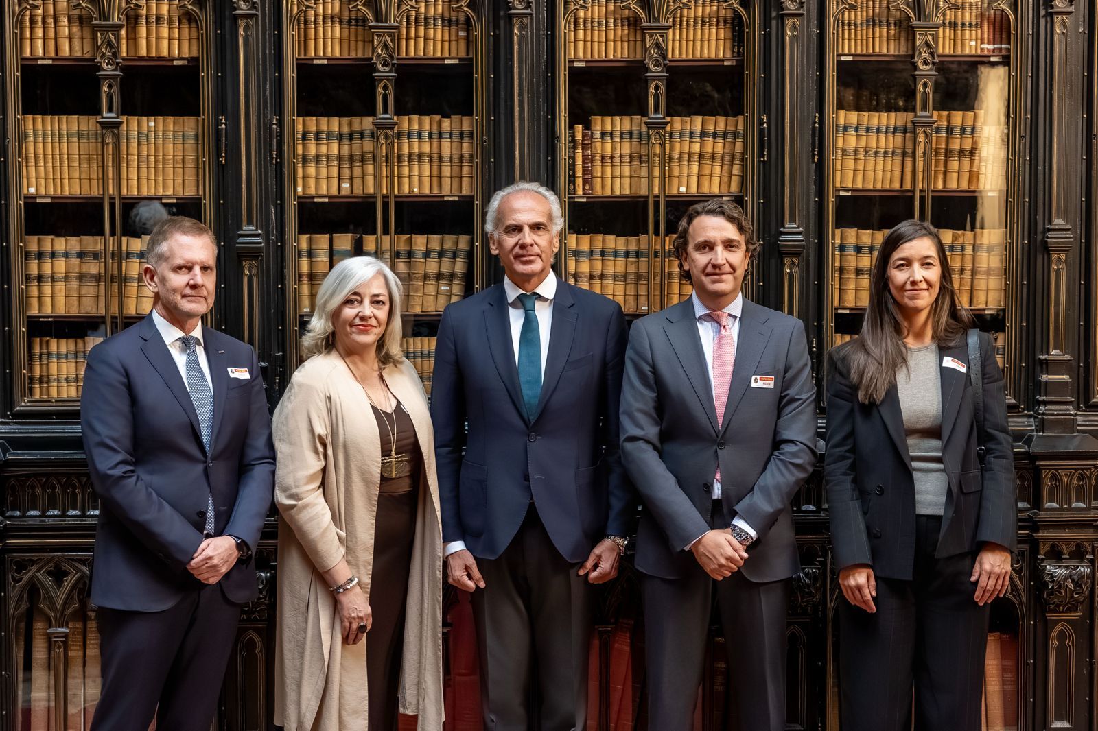 Posado institucional. De izquierda a derecha: Dionisio Martínez de Velasco, vicepresidente de Fenin; Lourdes López, vicepresidenta de Fenin; Enrique Ruiz Escudero, senador y portavoz del PP en la Comisión de Sanidad del Senado; Pablo Crespo, secretario general de Fenin; y Carmen Ansótegui, directora de RR. II. y Comunicación de Fenin.