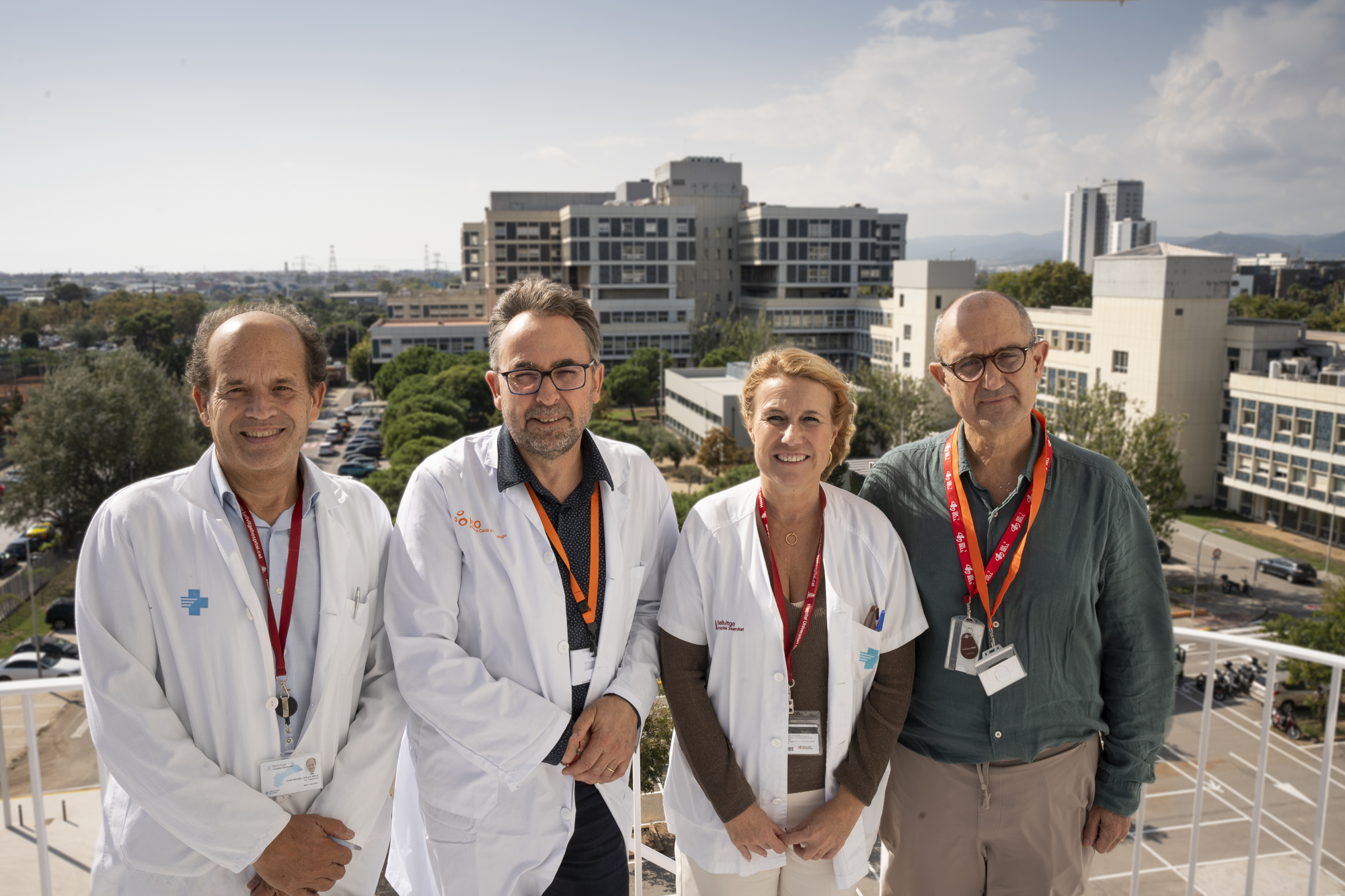 De izquierda a derecha: • dr. Joan Miquel Nolla, vicedecano académico de la Facultad de Medicina y Ciencias de la Salud de la Universidad de Barcelona • Dr. Joan Brunet, director del ICO y del CCC Campus Salut Bellvitge • Dra. Cristina Capdevila, gerente del Hospital Universitario de Bellvitge • Dr. Gabriel Capellà, director del IDIBELL