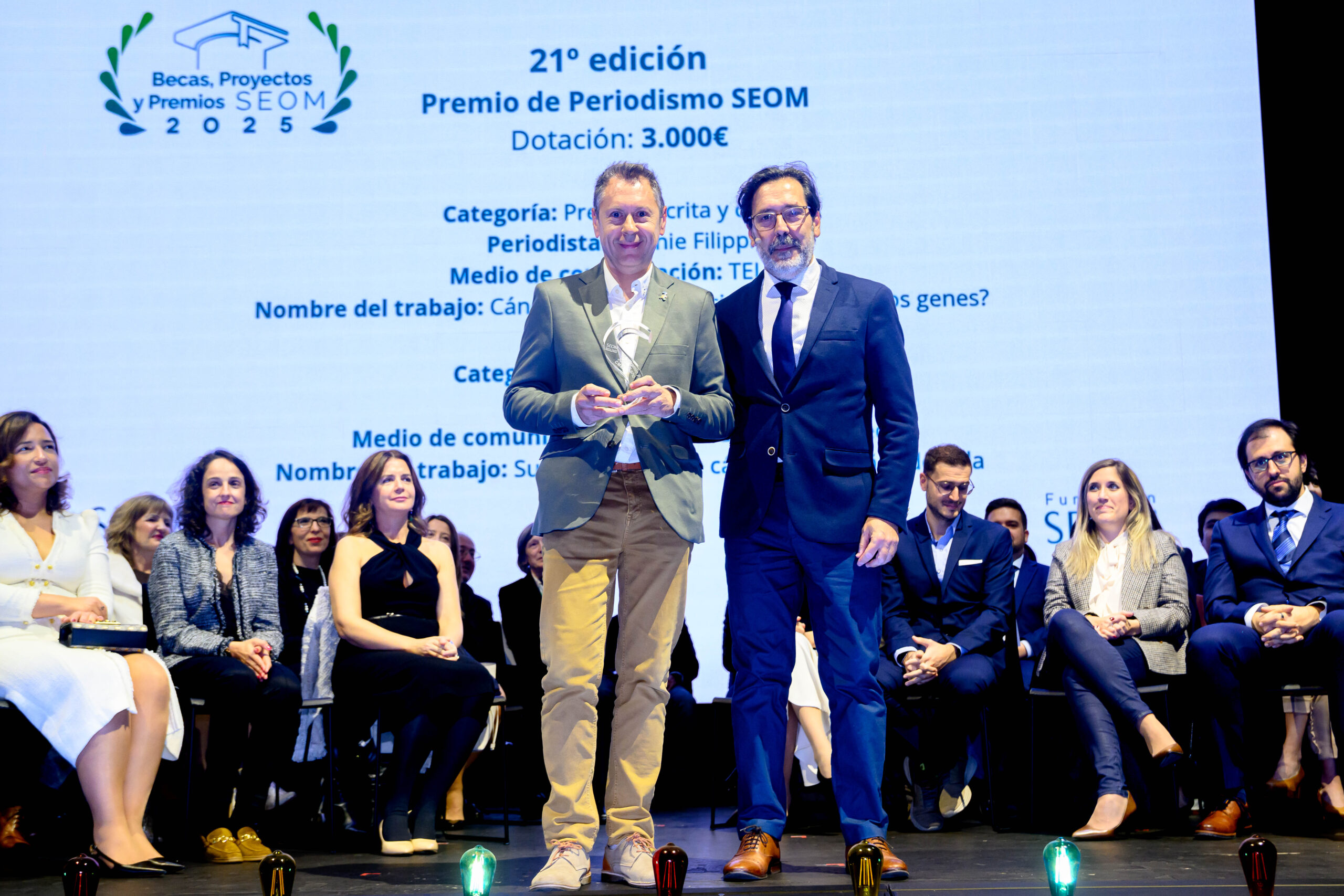 El trabajo ‘Cáncer de mama: ¿y si fuera cosas de los genes?’, de la periodista de TELVA, Aminie Filippi ha sido el ganador del 21.º Premio de Periodismo SEOM en la categoría de prensa escrita y digital, y el reportaje ‘Supervivientes de cáncer, montañas de vida’, de Julián Cano, emitido en Castilla-La Mancha Media, en la categoría de medios audiovisuales.